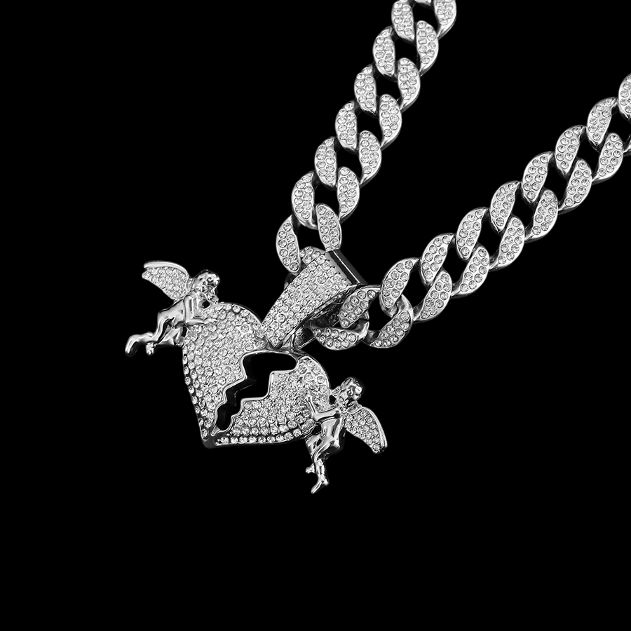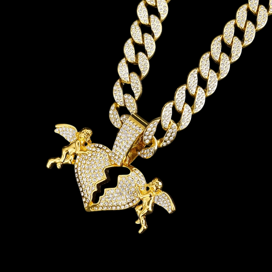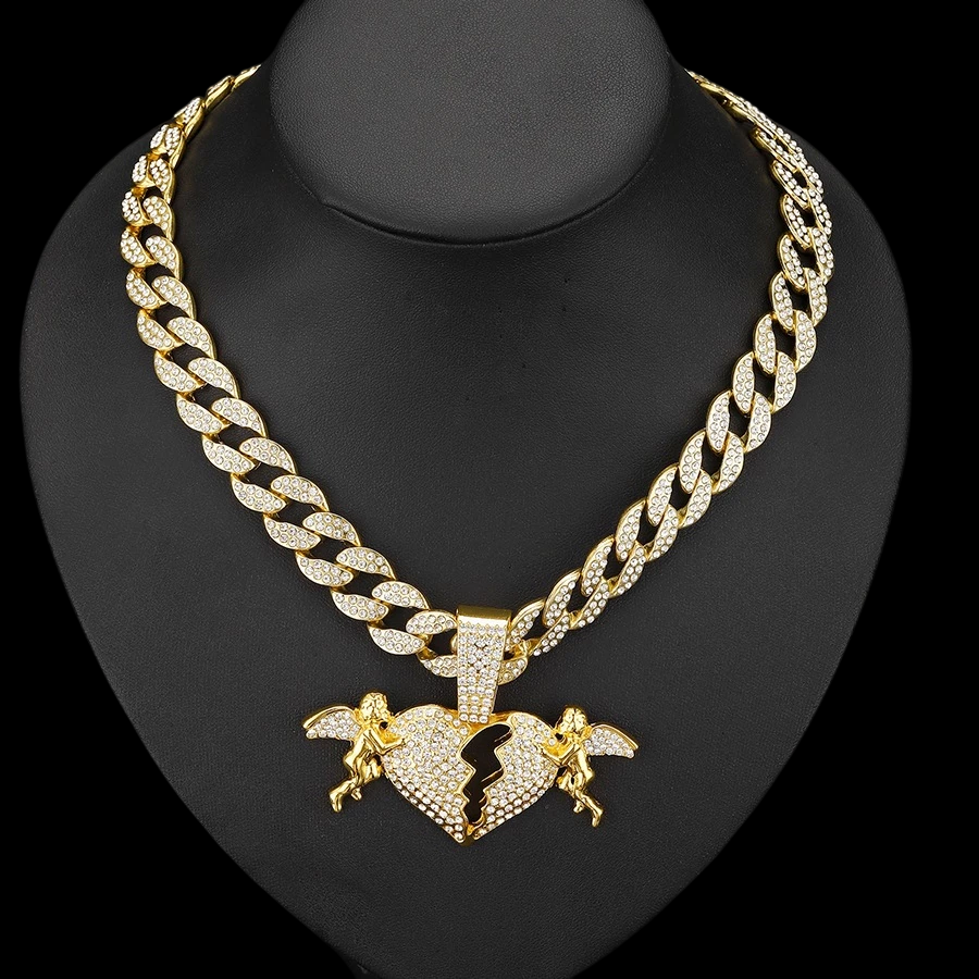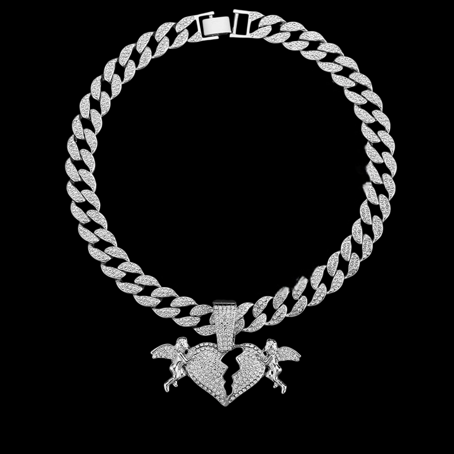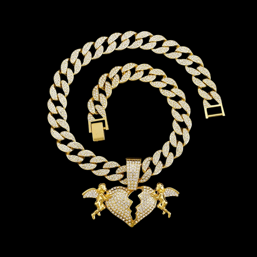Kit Corrente Cravejada E Pingente Anjos Cuban