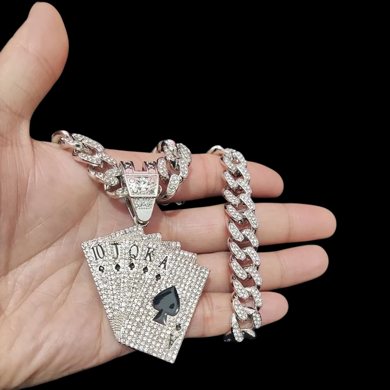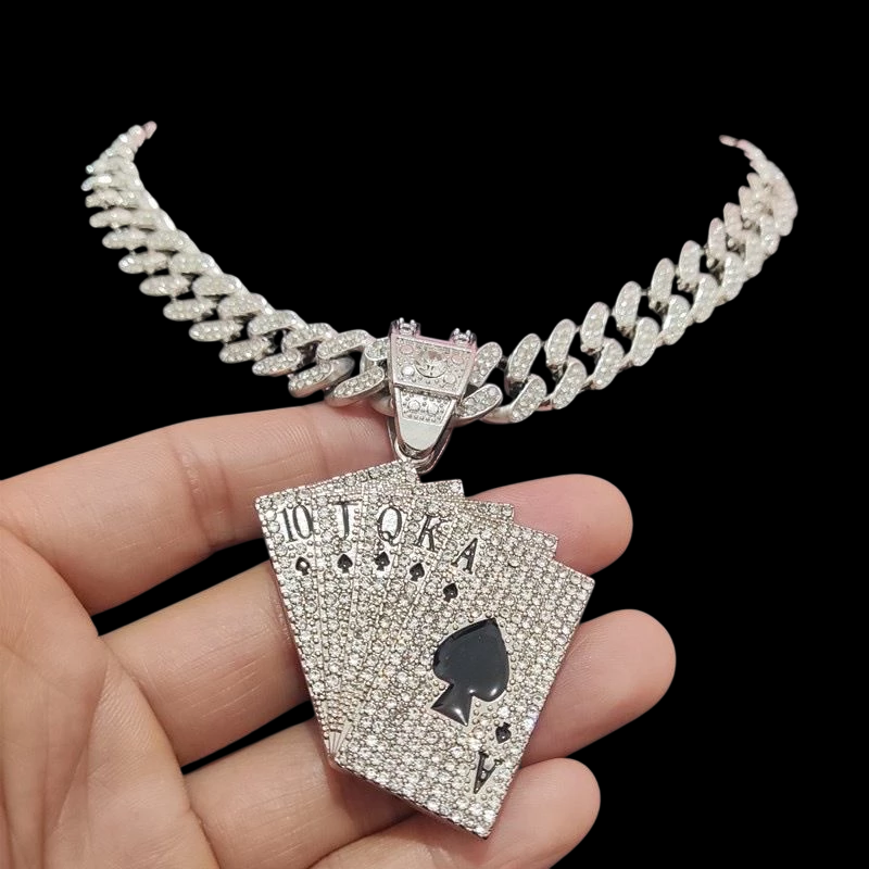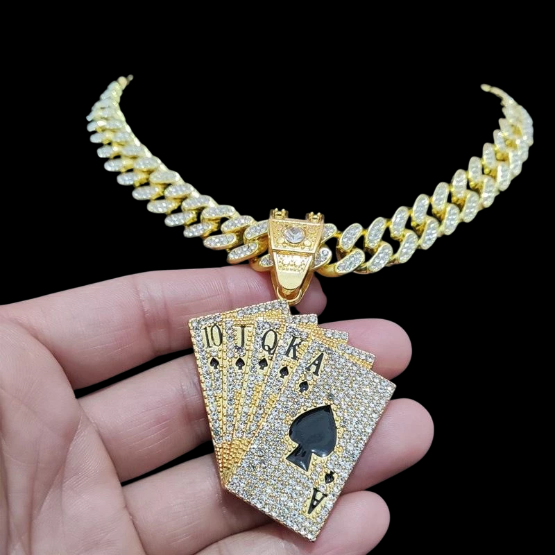 Kit Corrente Cravejada E Pingente Cartas Cuban
