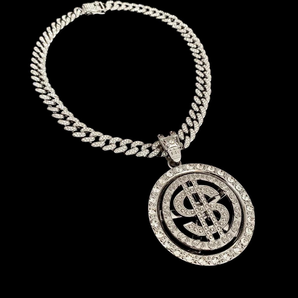 kit Corrente Cravejada E Pingente Cifrão Giratório Cuban