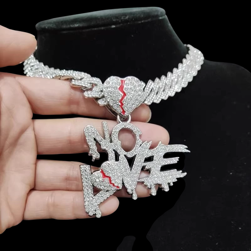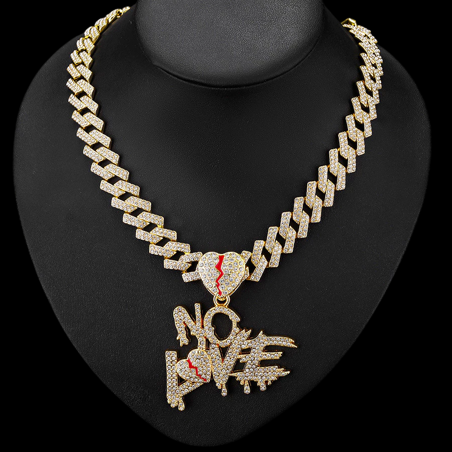 Kit Corrente Cravejada E Pingente No Love Cuban