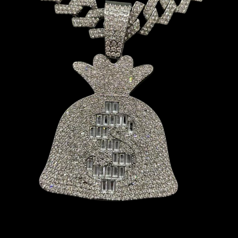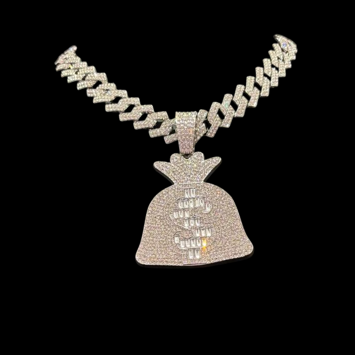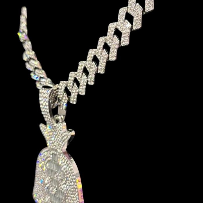 kit Corrente Cravejada E Pingente Saco De Ouro Cuban