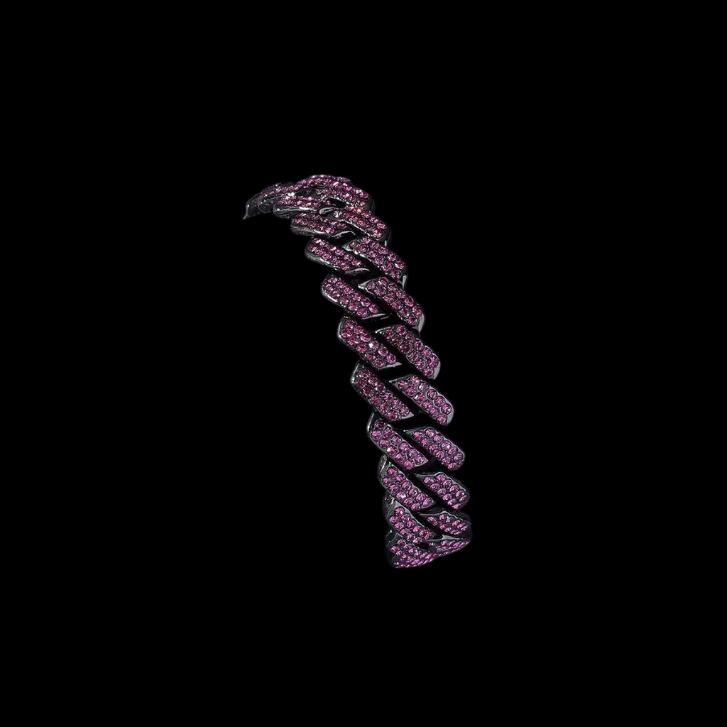 Kit Corrente Cravejada E Pulseira Miami Pink Cuban