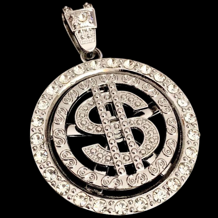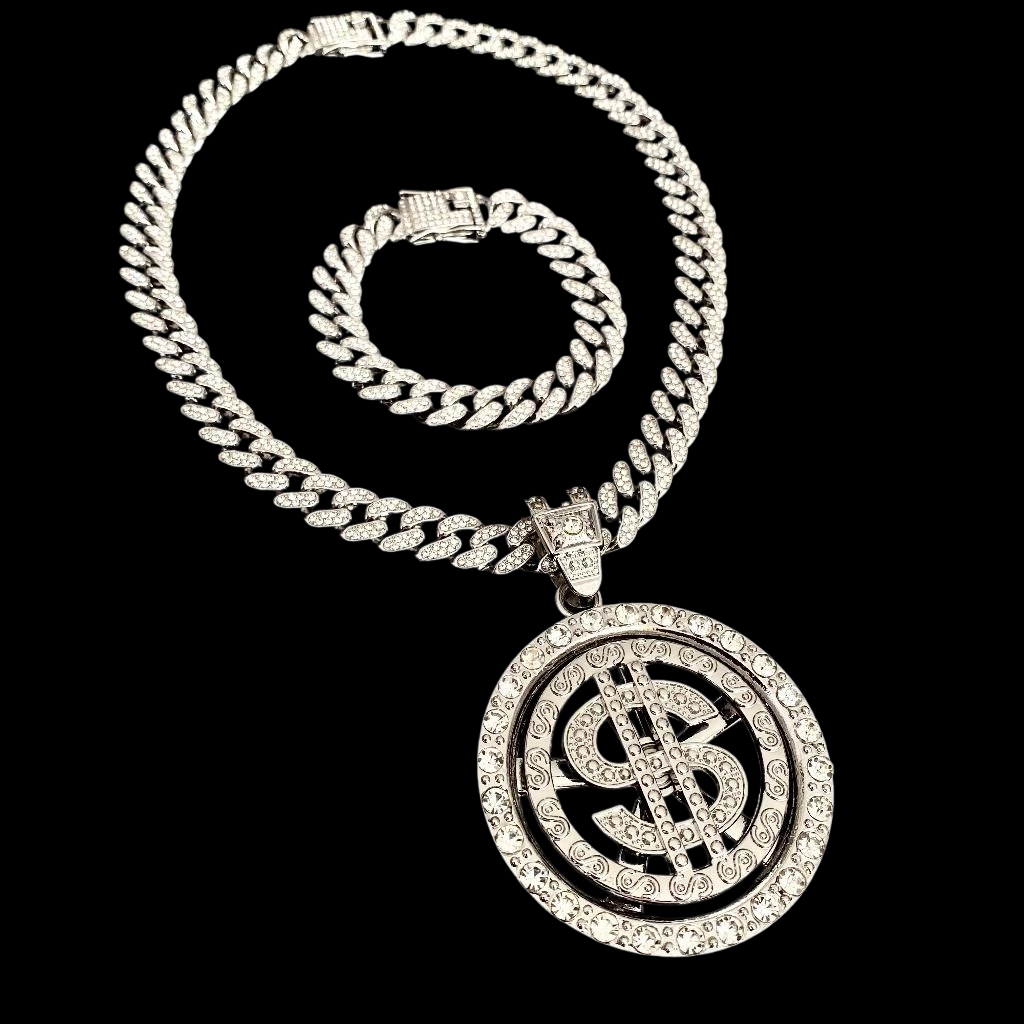 kit Corrente Cravejada Pulseira E Pingente Cifrão Giratório Cuban