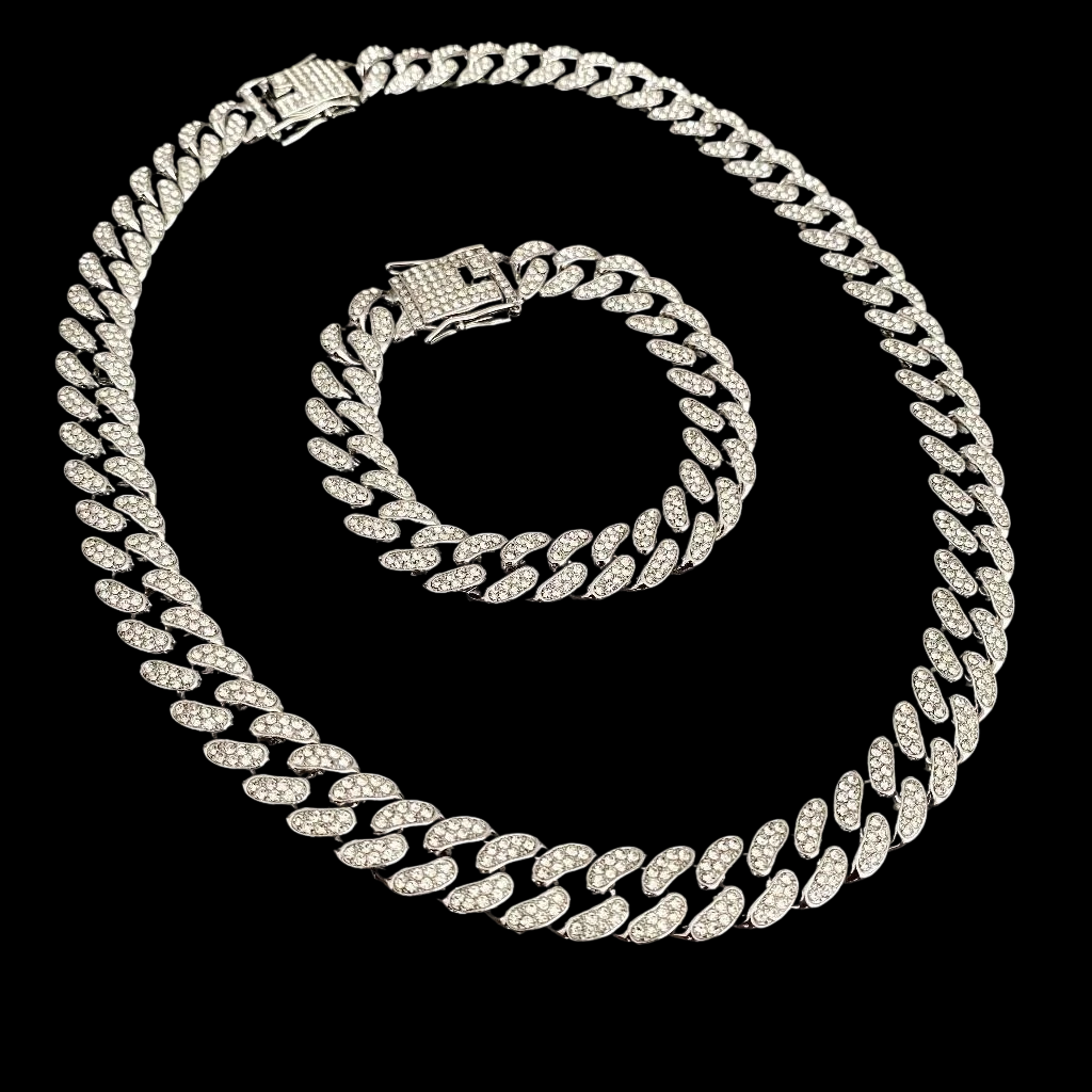 Nossas correntes cravejadas são mais do que simples acessórios, são declarações de poder, elegância e individualidade, cada peça é meticulosamente adornada com pedras cintilantes que capturam a luz de todos os ângulos, criando um efeito hipnotizante que atrai olhares e admiração instantaneamente.