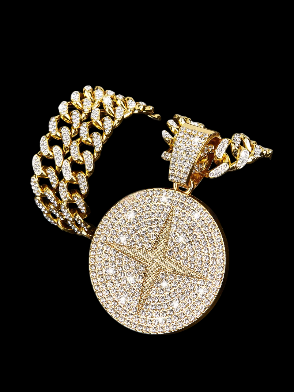 Nossas correntes cravejadas são mais do que simples acessórios, são declarações de poder, elegância e individualidade, cada peça é meticulosamente adornada com pedras cintilantes que capturam a luz de todos os ângulos, criando um efeito hipnotizante que atrai olhares e admiração instantaneamente.