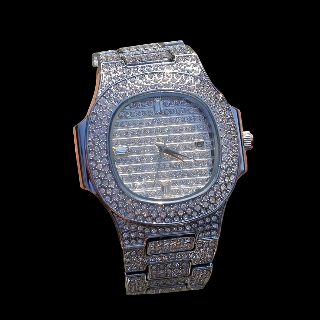 Kit Relogio E Pulseira Cravejada Ice Cuban